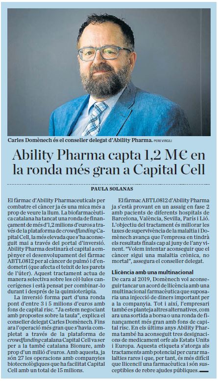 AbilityPharma Announces € 7 Million Financing Round to Advance Development of its Clinical Phase 2b Autophagy Inducer ABTL0812 in Metastatic Pancreatic Cancer + info